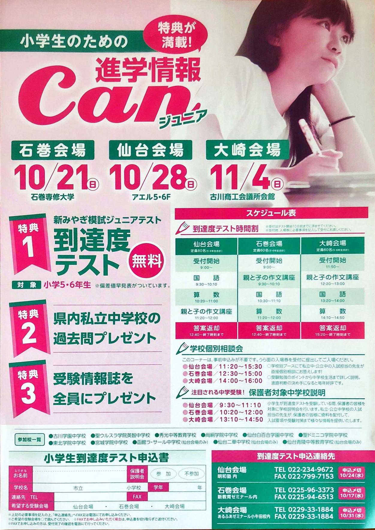 お知らせ(一般)【特典が満載!】小学生のための進学情報Canジュニアが開催されます。