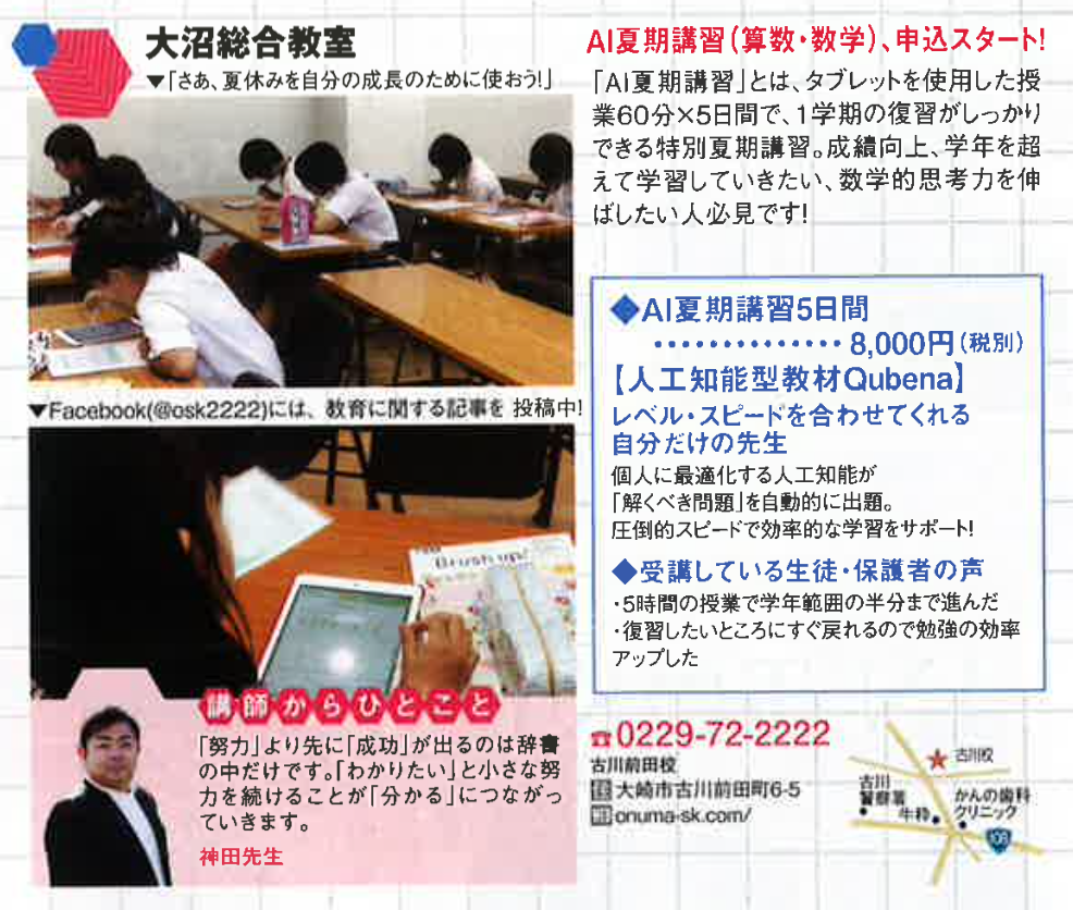 2019 さきっぺ掲載集 (AI) AI算数・数学 2020.03.16 さきっぺ創刊から、応援させてもらっています。 5月掲載 6月掲載 7月掲載 2020年もさきっぺにも掲載することになりました。少しでも意味のある情報を載せていきたいと思いますので、手に取ることがありましたらぜひご覧ください。 共有: クリックして X で共有 (新しいウィンドウで開きます) X Facebook で共有するにはクリックしてください (新しいウィンドウで開きます) Facebook 関連